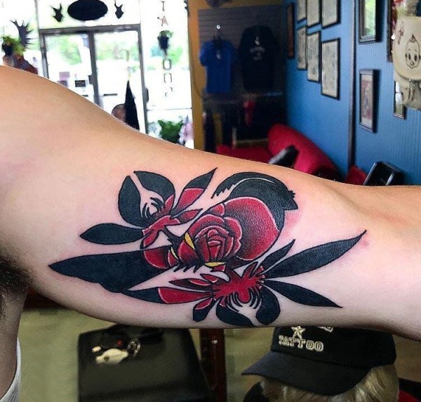 欧美玫瑰纹身 男生手臂上花朵纹身图片