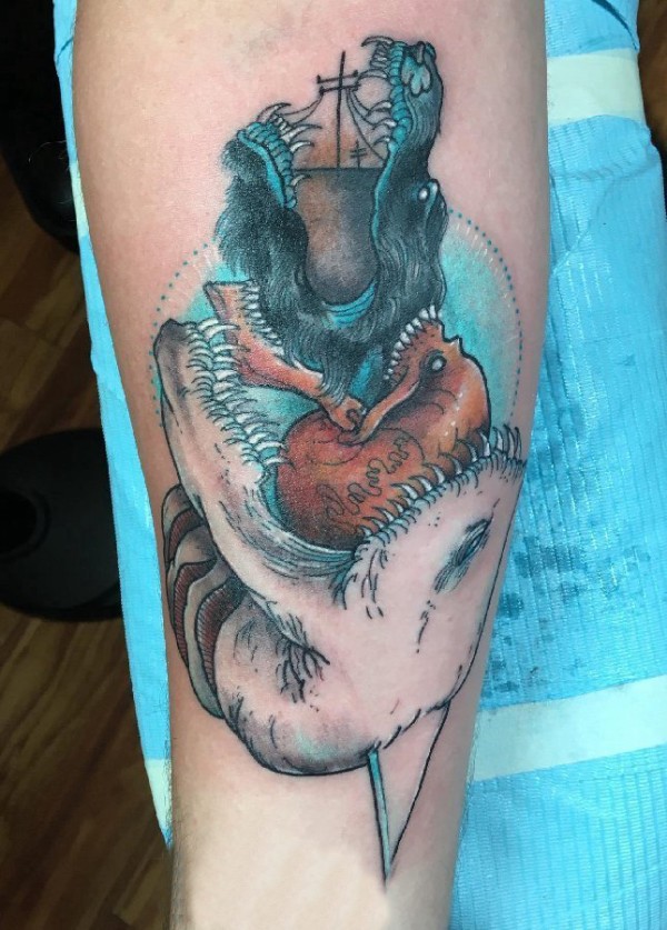 男生手臂上彩绘水彩素描创意动物纹身图片