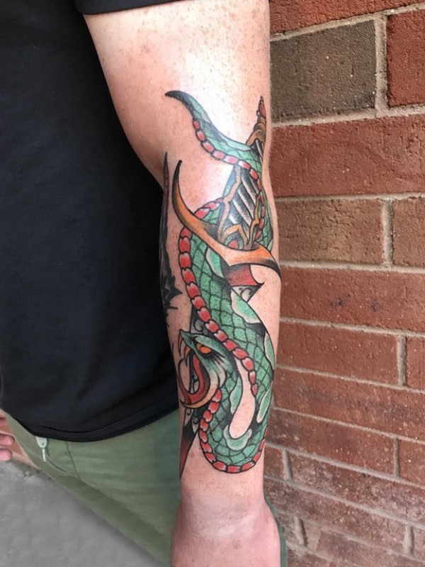 男生手臂上彩绘水彩素描创意霸气蛇纹身图片