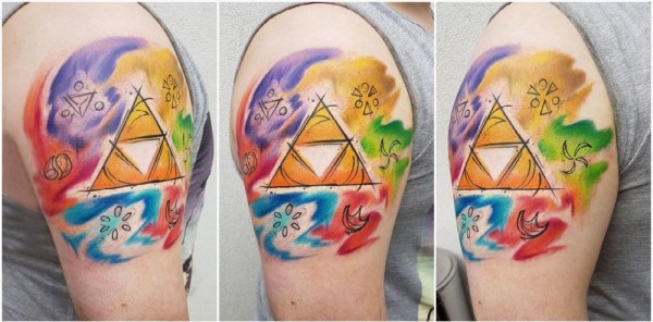 男生手臂上彩绘渐变几何抽象线条三角形纹身图片