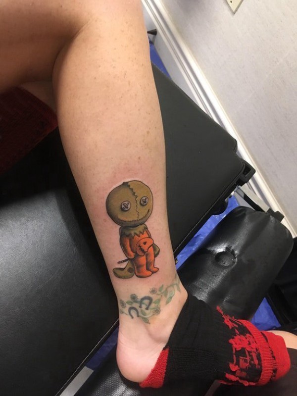 男生小腿上彩绘水彩素描创意搞怪有趣娃娃卡通纹身图片