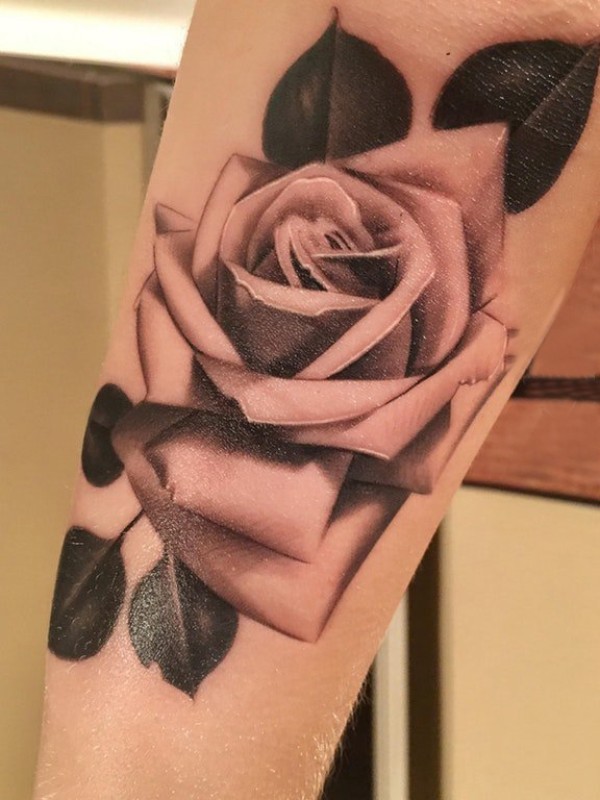 欧美玫瑰纹身 男生手臂上花朵纹身图片
