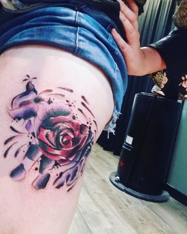 女生大腿上彩绘水彩素描创意文艺唯美花朵精致纹身图片