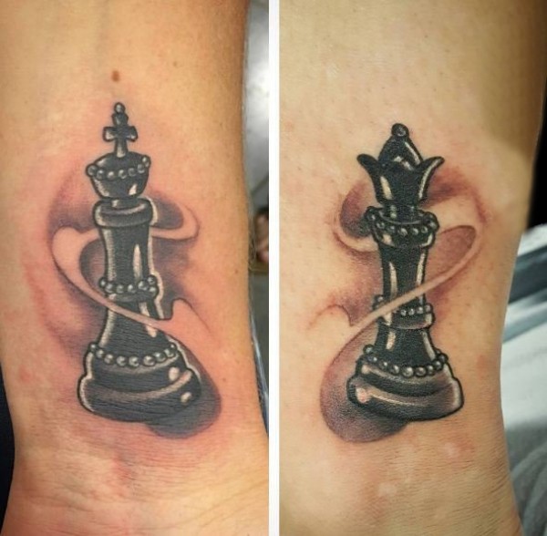 男生小腿上彩绘水彩素描创意棋子纹身图片