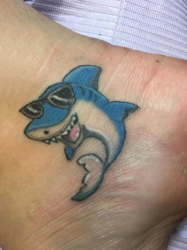 女生脚踝上彩绘简单线条卡通小动物鲨鱼纹身图片