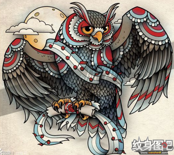 欧美猫头鹰纹身,好看的猫头鹰纹身,庄行纹身店,奉贤纹身店