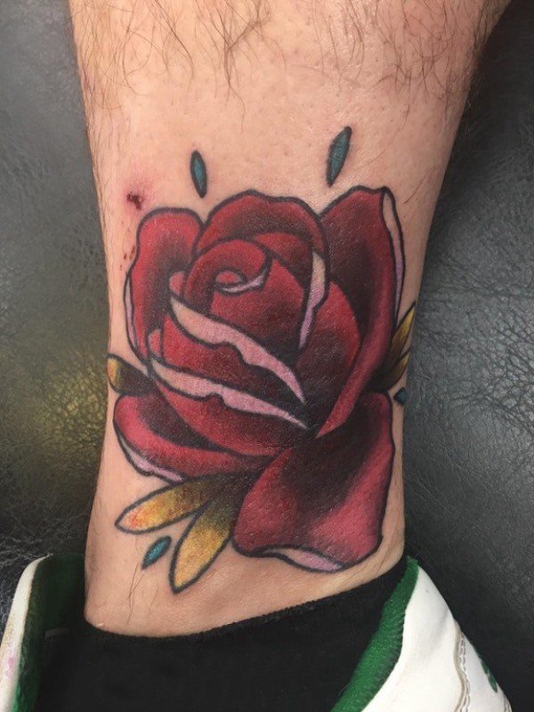 男生小腿上彩绘水彩素描创意唯美玫瑰纹身图片