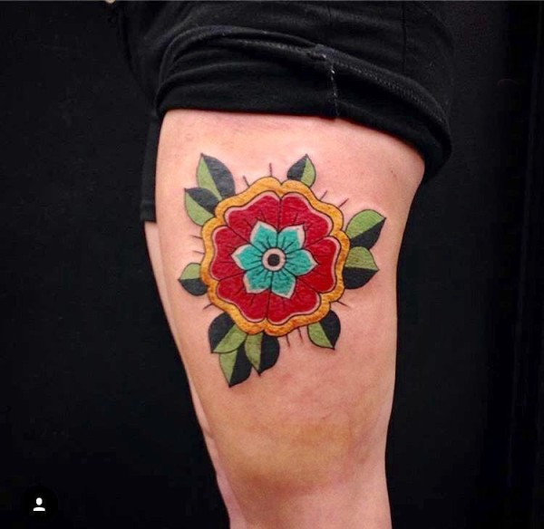 清新花朵腿部纹身图案图片_植物纹身图案大全_纹身图吧
