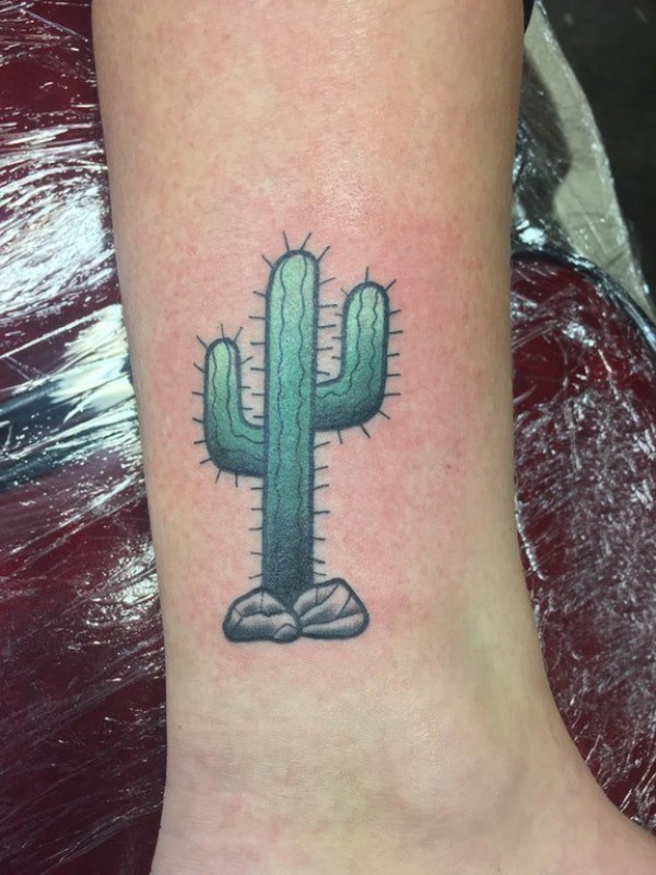 男生小腿上彩绘渐变简单线条植物仙人掌纹身图片