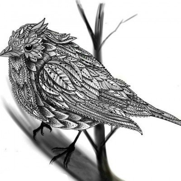 黑灰素描创意文艺精美花纹小鸟纹身手稿