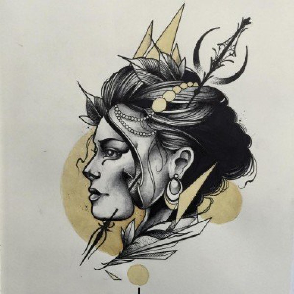 黑灰素描创意文艺唯美经典女生人物肖像纹身手稿