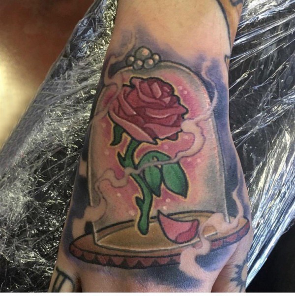 手部个性盛开莲花纹身图片_植物纹身图案大全_纹身图吧
