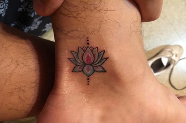 男生脚踝上彩绘渐变简单线条植物莲花纹身图片
