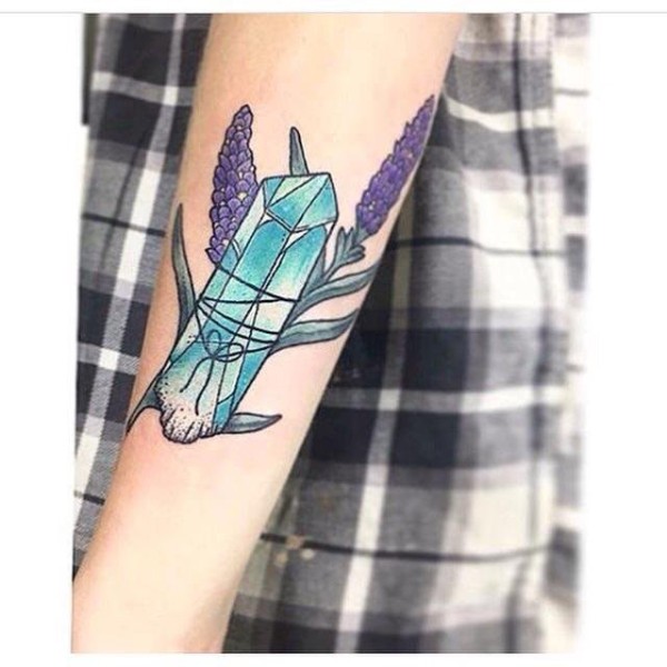 女生手臂上彩绘水彩素描创意文艺钻石纹身图片