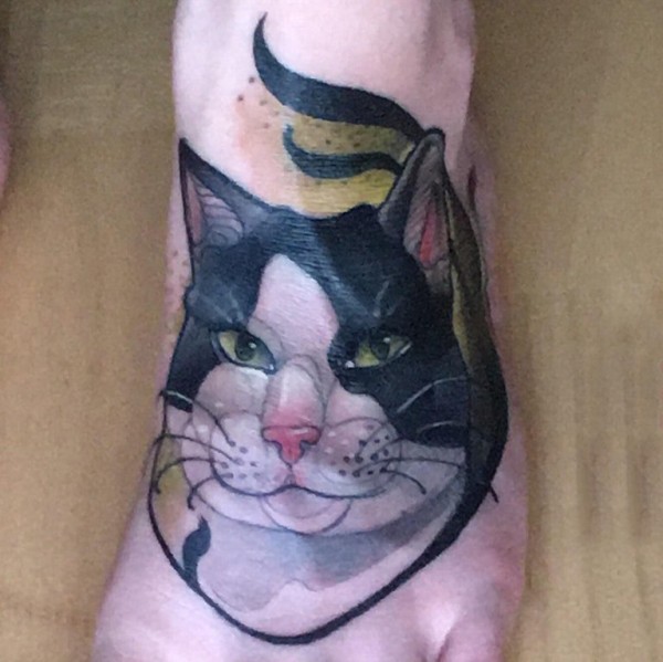 男生脚背上彩绘渐变简单线条小动物猫咪纹身图片