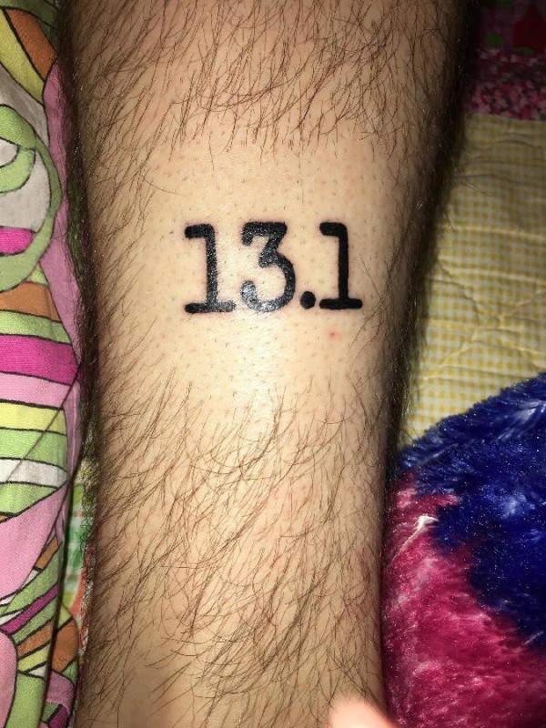 男生小腿上黑色线条创意文艺经典数字纹身图片