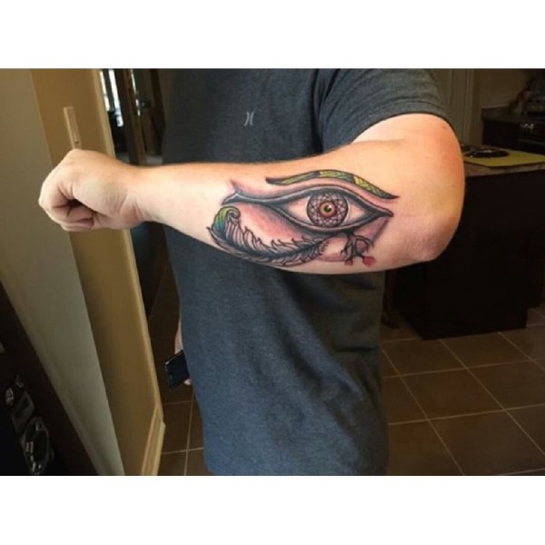 男生手臂上黑灰素描点刺技巧文艺唯美眼睛纹身图片