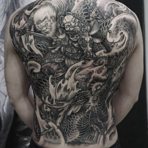 日式手彫刺青作品—半甲龙很感谢客户认可手彫刺青,手彫是日本纹身的手工雕刻技术,时间可以追溯到日本17世纪的江户时代。19世纪,手彫技术被日本黑帮挪用,被用作入会仪式,象征着从此就是江湖中人。在日式传统