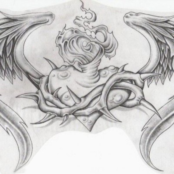 黑灰素描创意文艺藤蔓心形纹身手稿