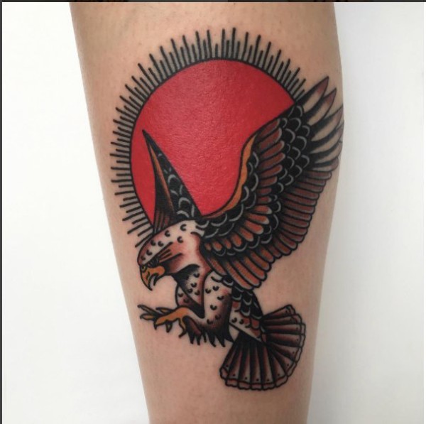 女生手臂上彩绘水彩素描创意霸气老鹰纹身图片