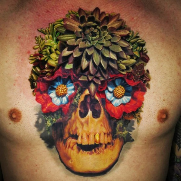 逼真的超现实主义花纹身图案来自纹身师莫拉莱斯