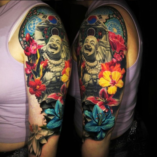 逼真的超现实主义花纹身图案来自纹身师莫拉莱斯