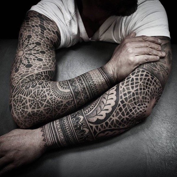 25款男性黑色手臂线条纹身点刺技巧半甲纹身图案