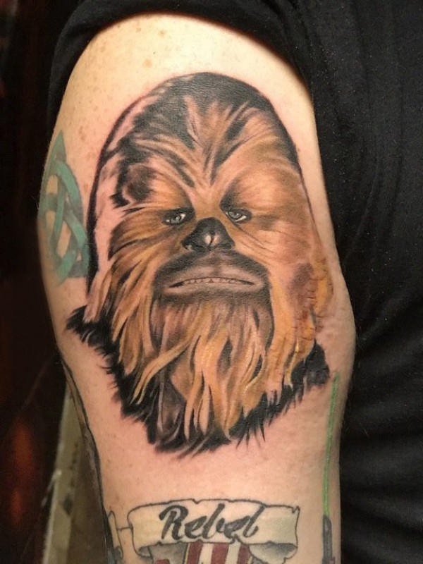 男生手臂上彩绘水彩素描创意霸气猩猩纹身图片