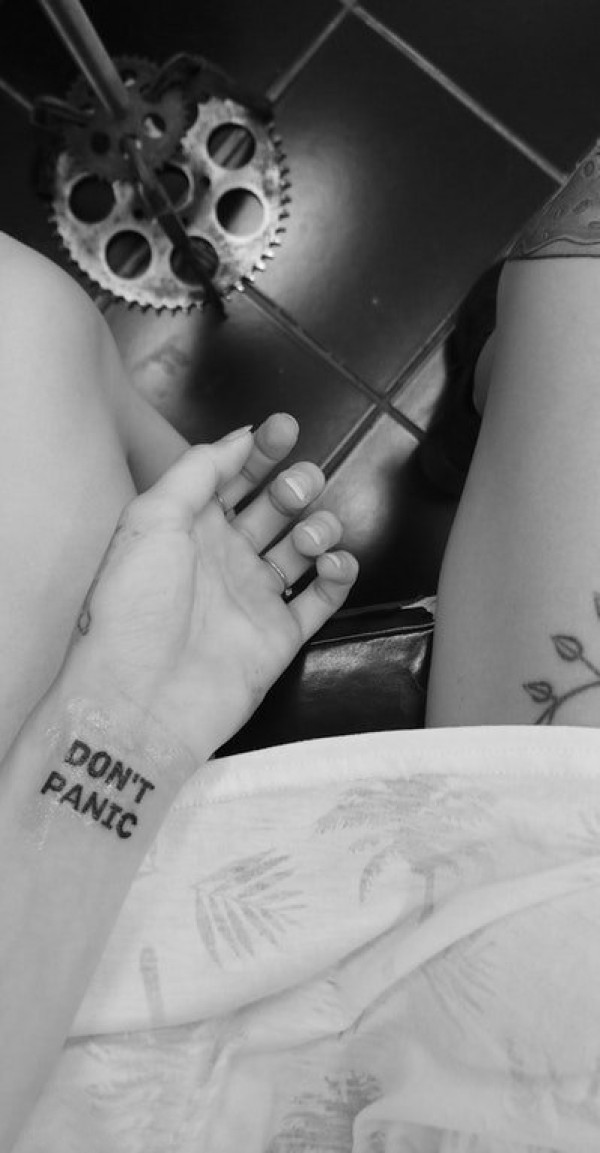 女生手腕上黑色线条素描创意文艺花体英文纹身图片
