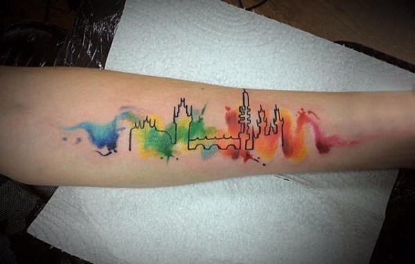 女生手臂上彩绘泼墨几何线条建筑纹身图片
