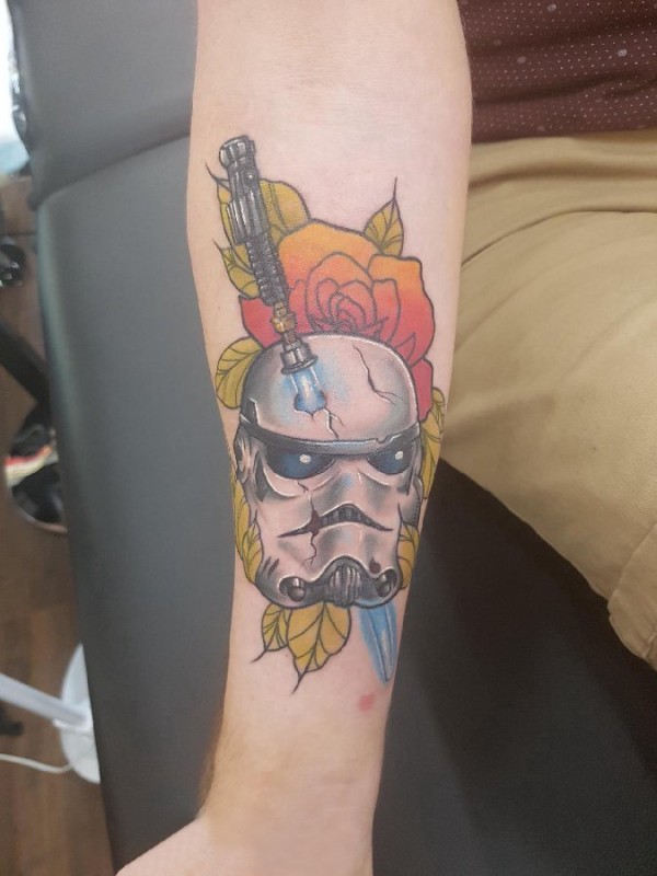 男生手臂上彩绘水彩素描创意经典战士纹身图片