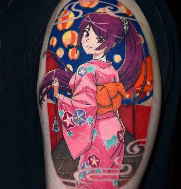 复古卡通红唇美女手臂纹身_卡通纹身图案大全_纹身图吧
