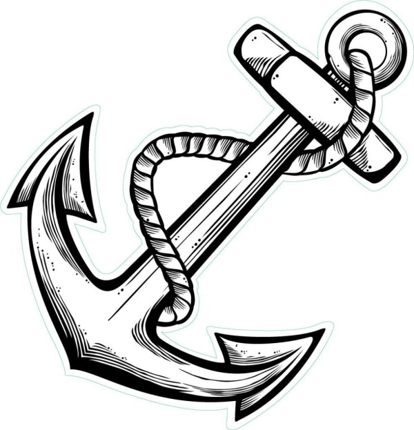 黑灰素描创意文艺经典海军风船锚纹身手稿