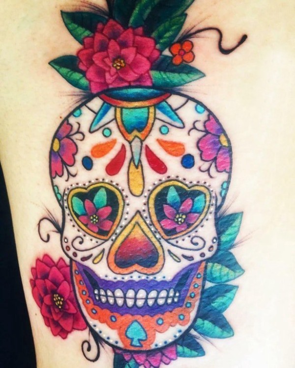 侧腰女骷髅刺青图案图片_骷髅纹身图案大全_纹身图吧