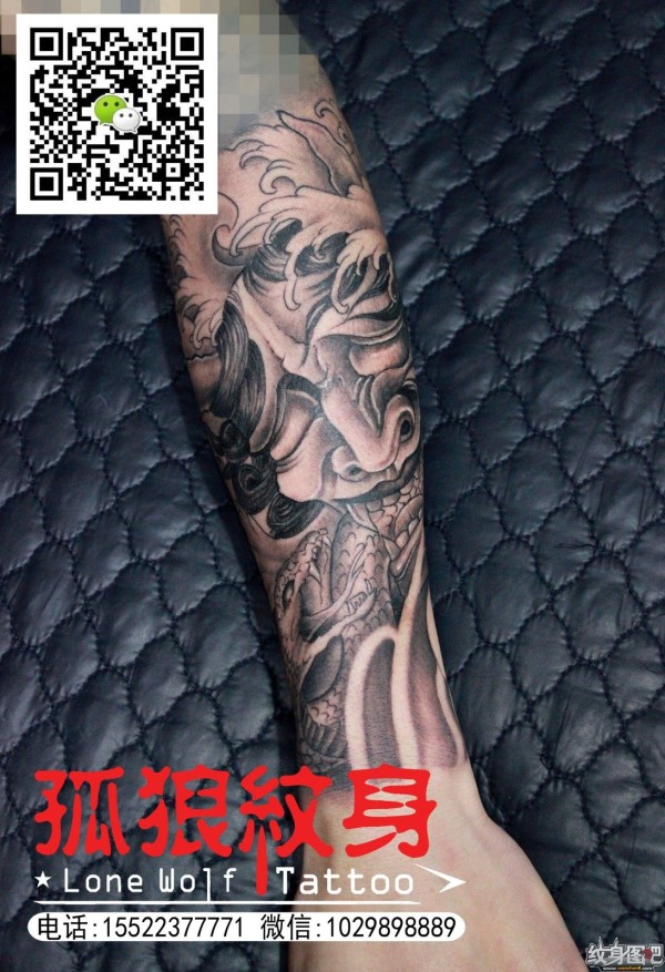 宝坻纹身 般若包小臂纹身 孤狼纹身工作室作品 天津