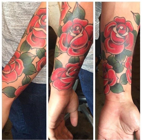 欧美玫瑰纹身 男生手臂上花朵纹身图片