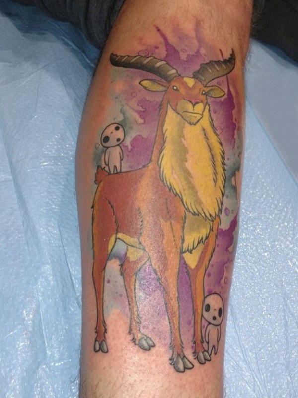 男生小腿上彩绘水彩素描创意可爱动物纹身图片