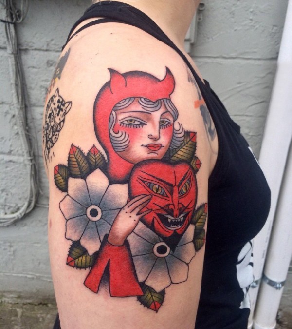 手臂一款彩色蘑菇纹身图案_臂部纹身图案大全_纹身图吧