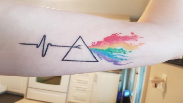 女生手臂上彩绘渐变几何抽象线条三角形纹身图片