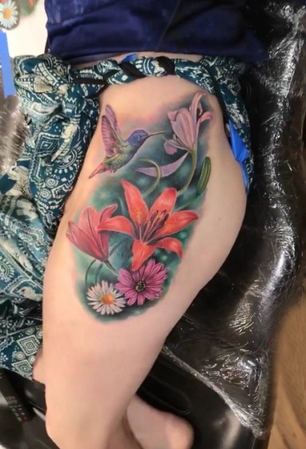 传统花腿纹身--18张传统风格的大花腿纹身图案作品