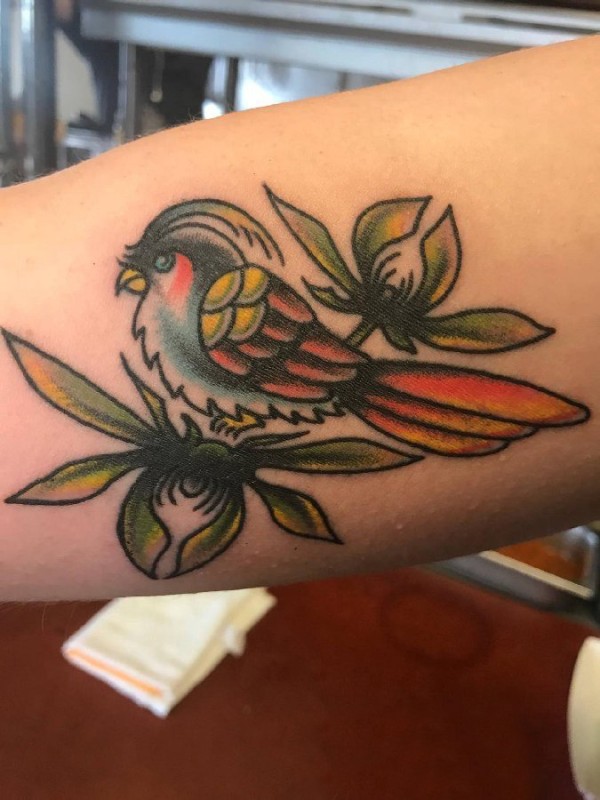 女生手臂上彩绘水彩素描创意文艺小鸟花朵纹身图片
