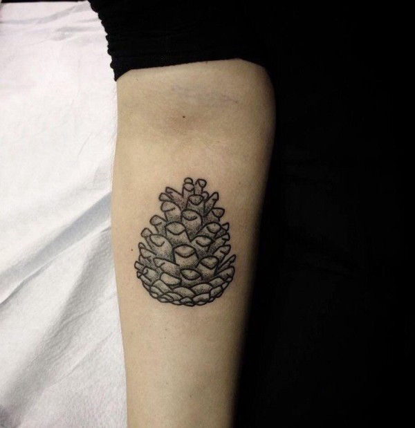 女生手臂上黑色点刺简单抽象线条松果纹身图片