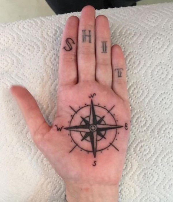 多款手掌上的黑色线条素描经典文艺纹身图案
