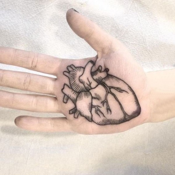 多款手掌上的黑色线条素描经典文艺纹身图案