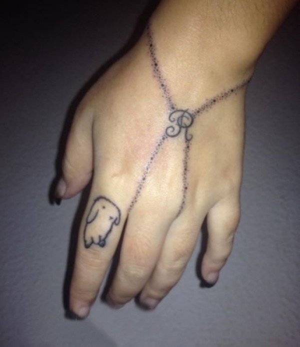 多款手腕上的黑色线条素描文艺唯美手链纹身图案