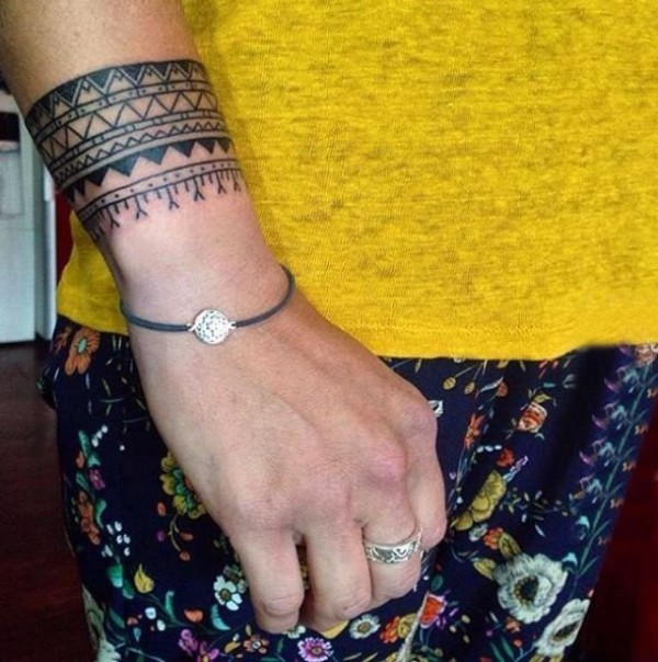多款手腕上的黑色线条素描文艺唯美手链纹身图案