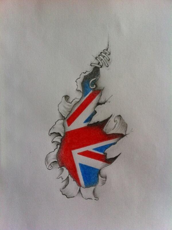 彩绘水彩素描文艺唯美经典裂痕旗帜纹身手稿