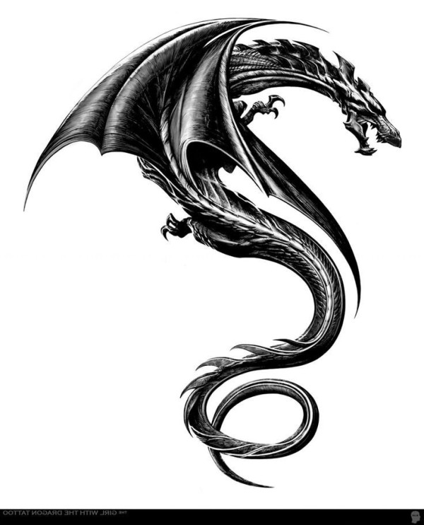 龙纹身手稿_一组老传统黑灰龙手稿纹身图案
