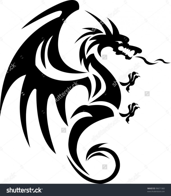 龙纹身手稿_一组老传统黑灰龙手稿纹身图案