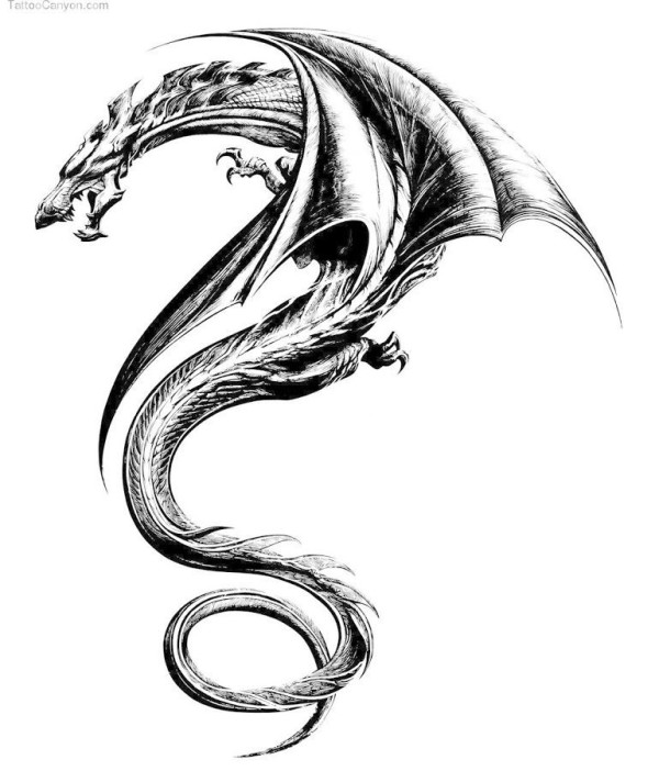 龙纹身手稿_一组老传统黑灰龙手稿纹身图案